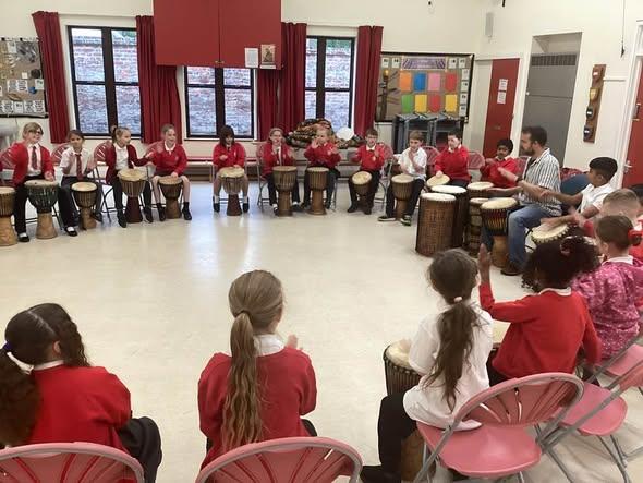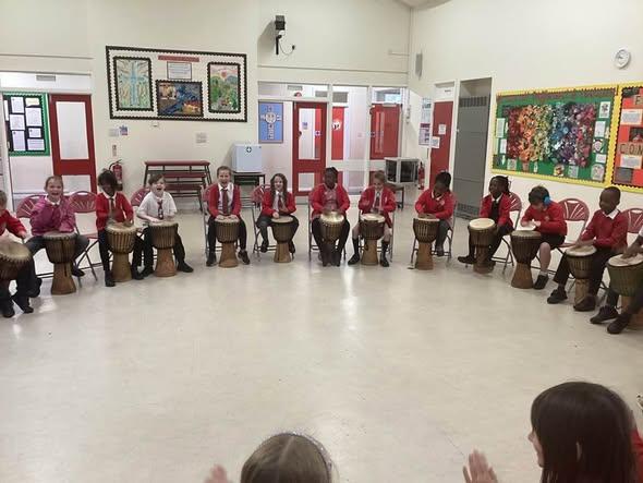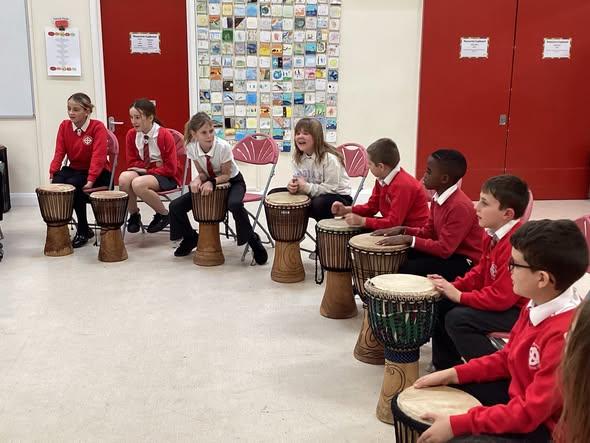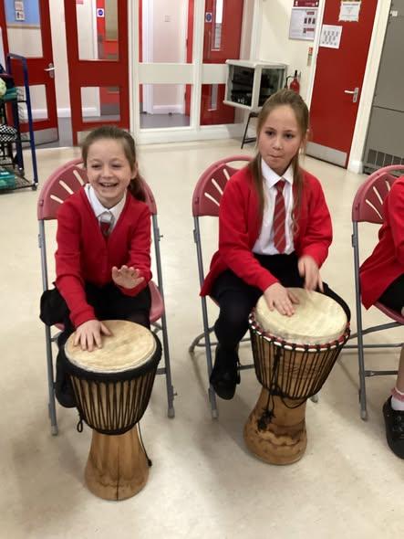 We were incredibly lucky to have been given a grant by The Blackdown Choir to enable us to all take part in an African drumming workshop. The children had a blast: