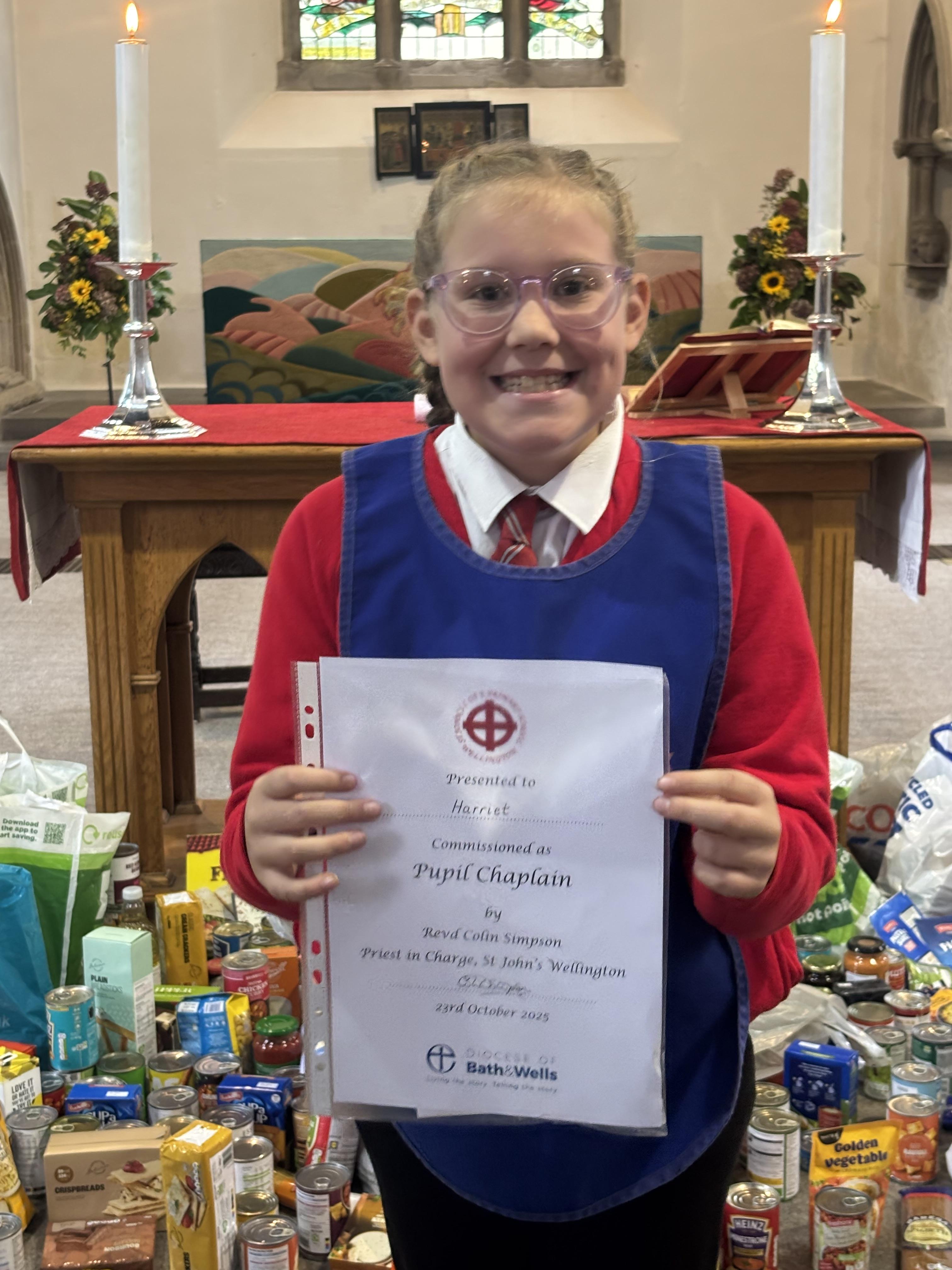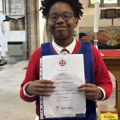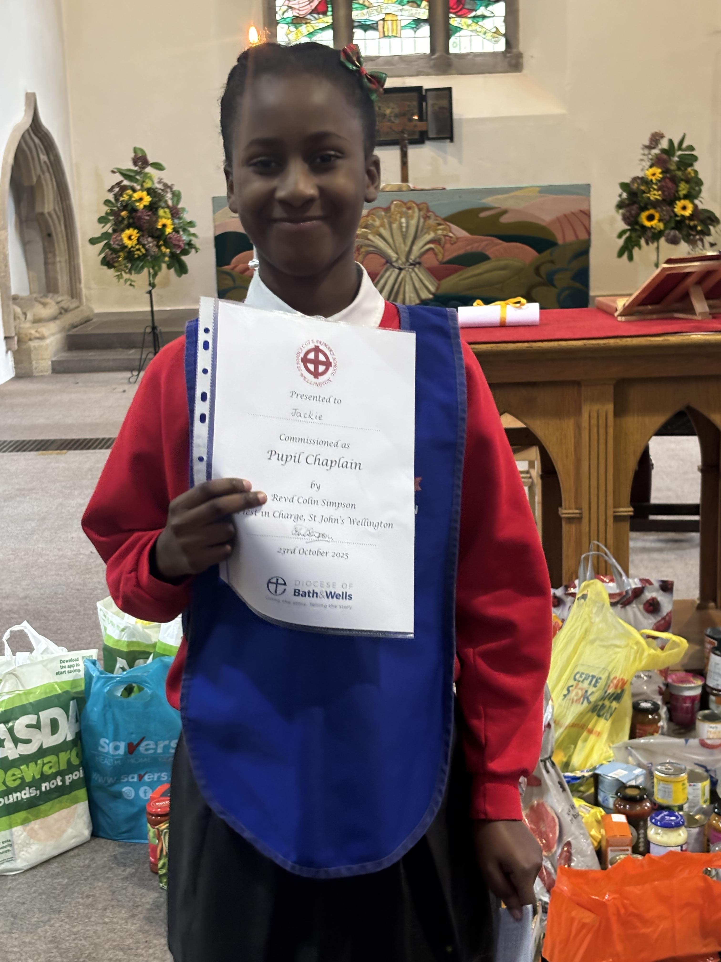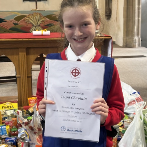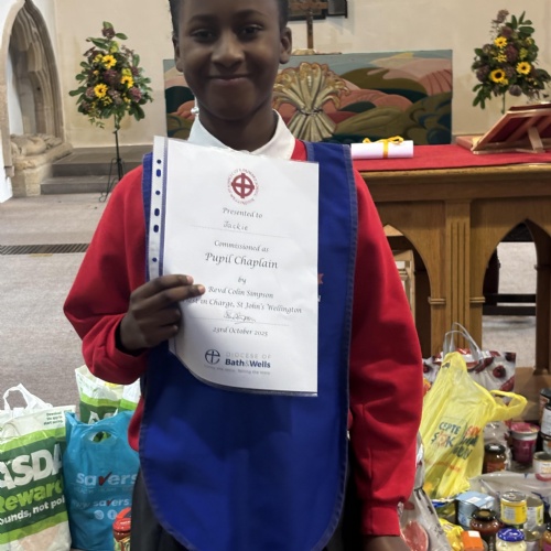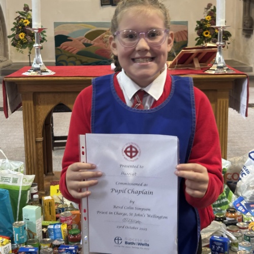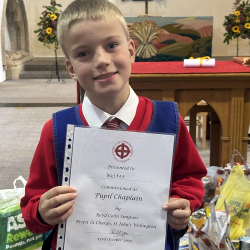 Following the success from previous years, St John’s Church of England Primary School celebrated their Pupil Chaplains during their Harvest Festival service. Before the new chaplains could be commissioned, the school celebrated those that have just completed their year of chaplaincy. They were thanked for their efforts and presented with a certificate of appreciation.