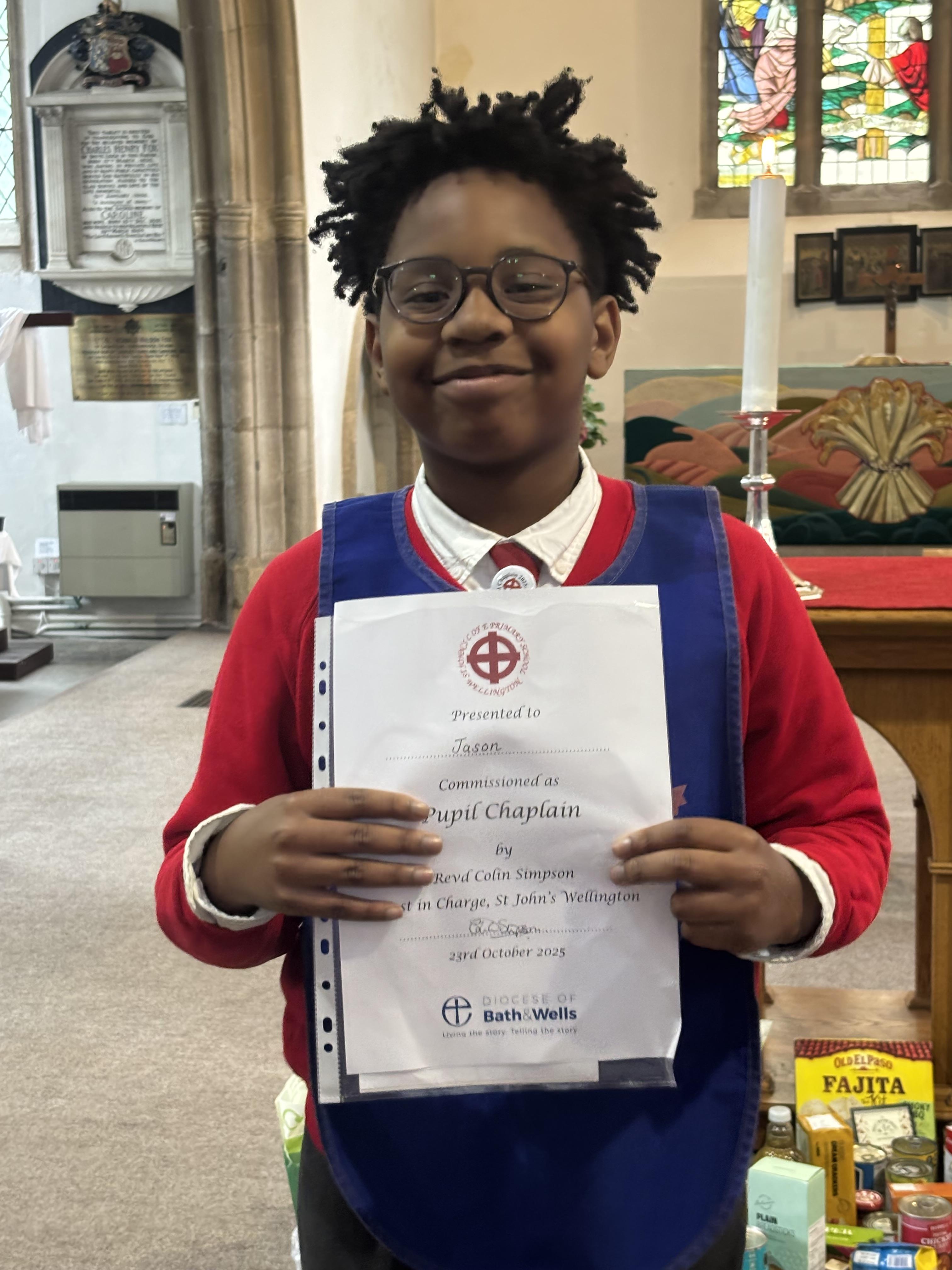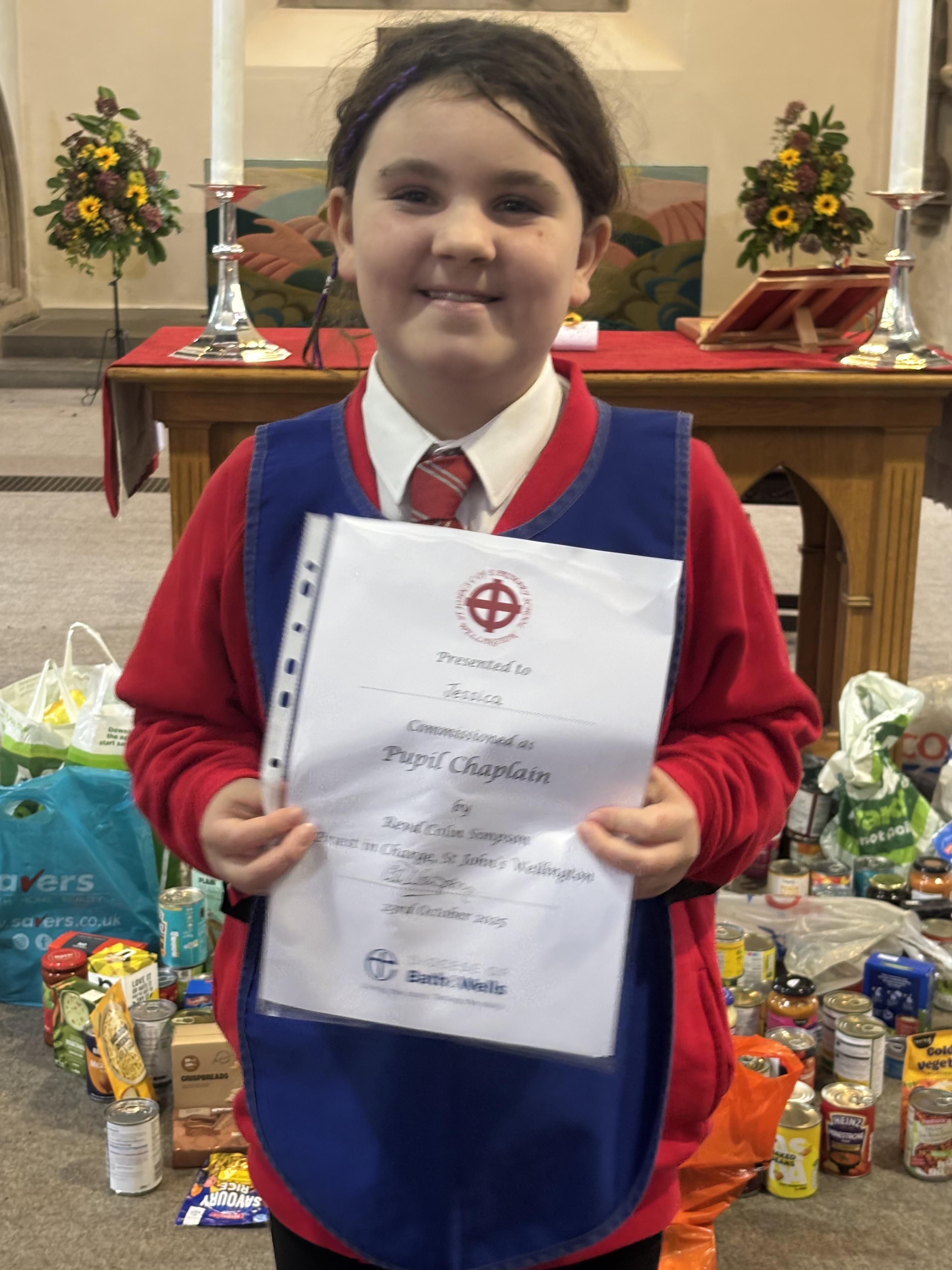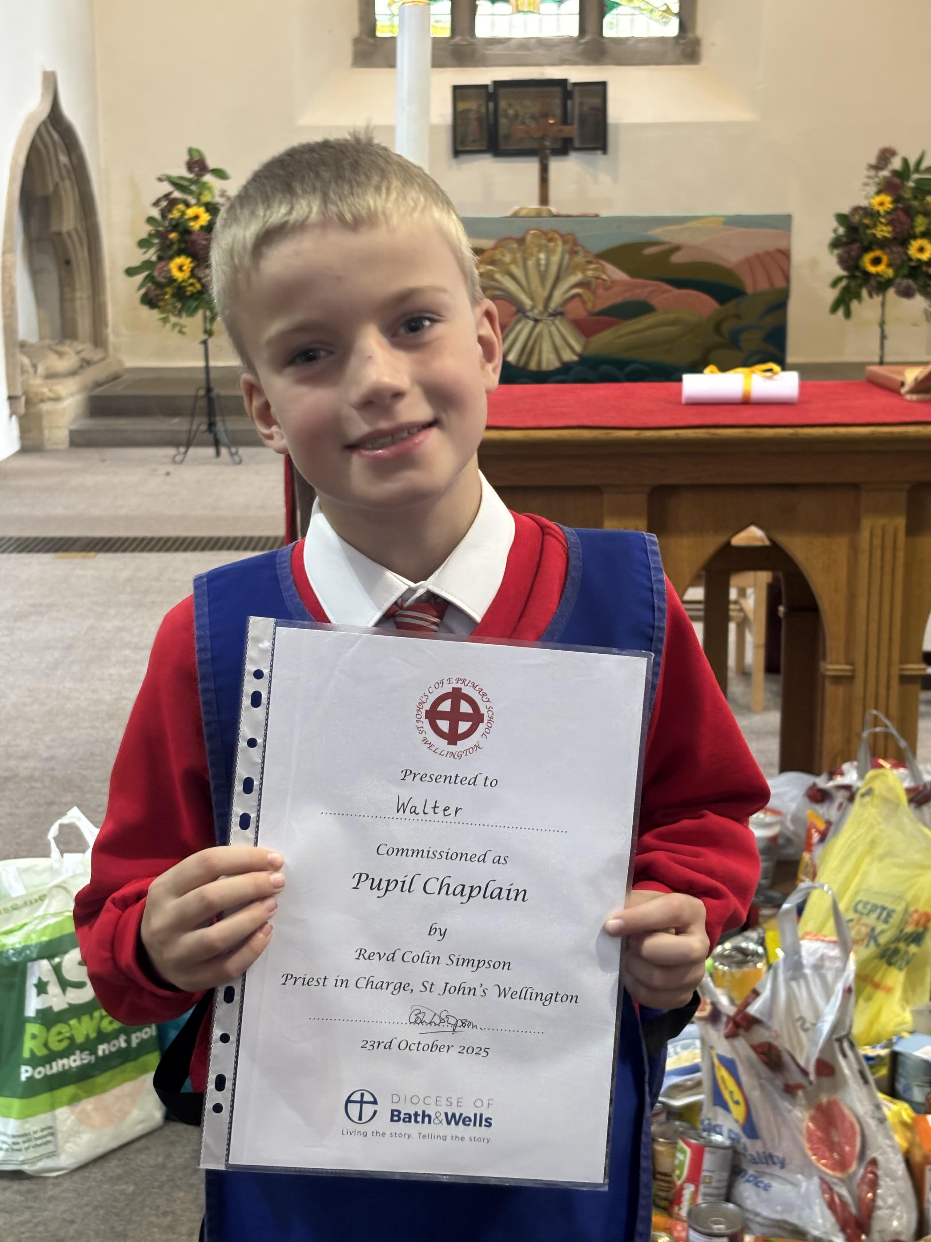 Following the success from previous years, St John’s Church of England Primary School celebrated their Pupil Chaplains during their Harvest Festival service. Before the new chaplains could be commissioned, the school celebrated those that have just completed their year of chaplaincy. They were thanked for their efforts and presented with a certificate of appreciation.
